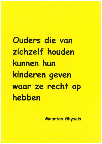 Ze houden onvoorwaardelijk van zichzelf en kunnen daardoor ook onvoorwaardelijk van hun kind houden. Opvoeden wordt daardoor veel gemakkelijker. Zoals ze zelf leven en wat ze aan zichzelf geven, geven ze ook aan hun kind. Het zijn ouders die geleerd hebben opnieuw te luisteren naar hun eigen innerlijke wijsheid en hun kinderen de kans bieden om ook naar hun eigen innerlijke waarheid en wijsheid te blijven luisteren. Op deze manier geven ze hun kinderen precies datgene wat een kind van zijn ouders verlangt en worden hun echte kinderrechten moeiteloos ingevuld. Dit biedt kinderen tevens de beste garantie dat ze niet zullen belast worden met de angsten, wensen en niet ingevulde verlangens van hun ouders.